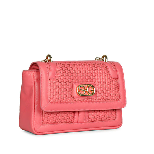 Addie Coral Hand Woven Leather Sling Bag