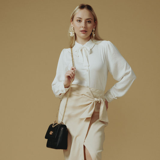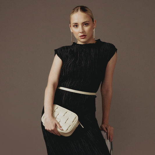 Addie White Hand Woven Leather Sling Bag