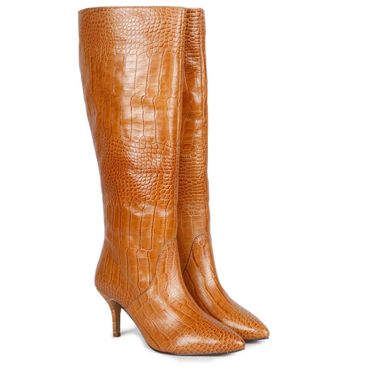 Saint Adella Cuoio Croco Embossed Vegan Leather Long Boots