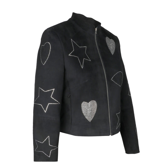 Saint Venessa Stone Embossed Black Leather Women Biker Jackets.