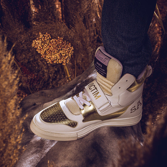 Saint Vanessa Gold Metallic Leather Floral Wedge Heels