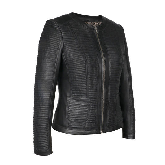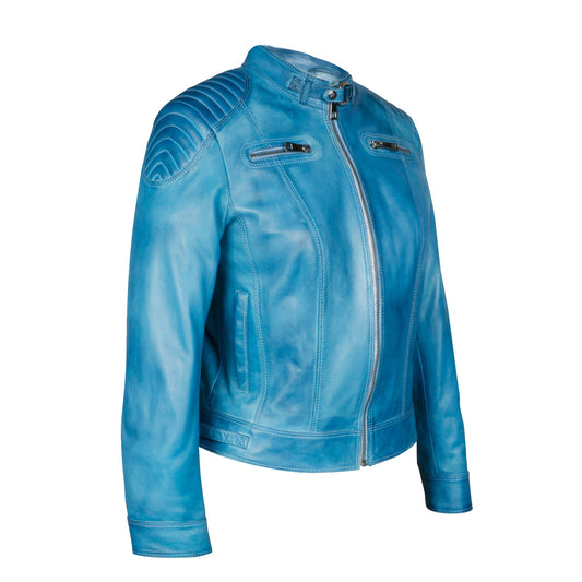 Saint Veronique Blue Leather Zip-Up Women Cafe Racer Jackets