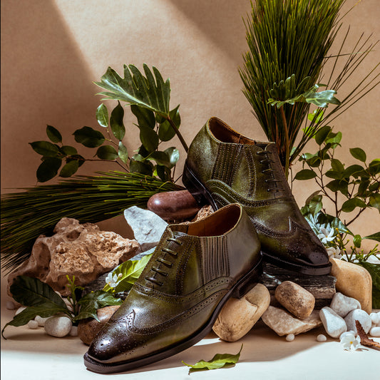 Saint Vincenzo Olive Leather Square Toe Lace Up Décor Slip On Shoes