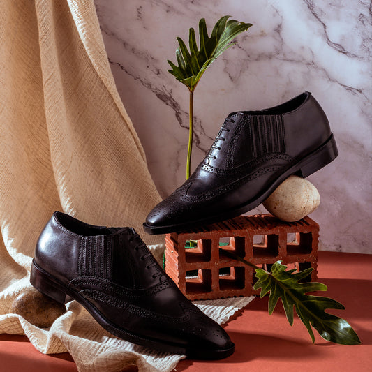 Saint Vincenzo Black Leather Square Toe Lace Up Décor Slip On Shoes