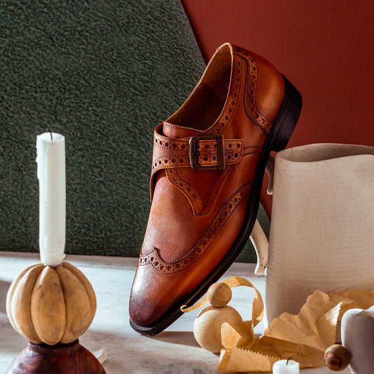 SaintG Tan Leather Monk Brogue