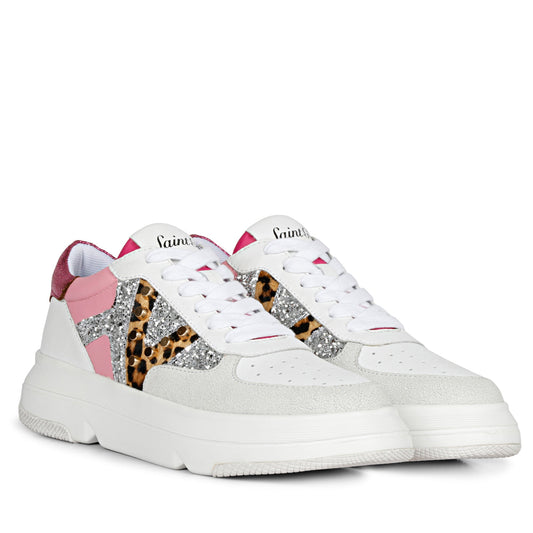 Saint Antea Studs Embellished White & Green Leather Sneakers