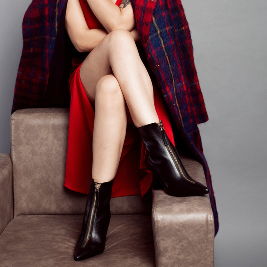 Saint Ava Black Leather Handcrafted Front Zip Heel Ankle Boots