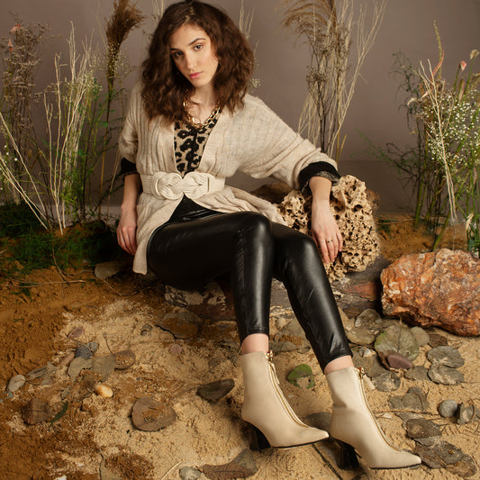Saint Ava White Leather Handcrafted Front Zip Heel Ankle Boots