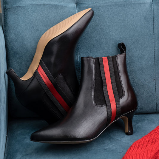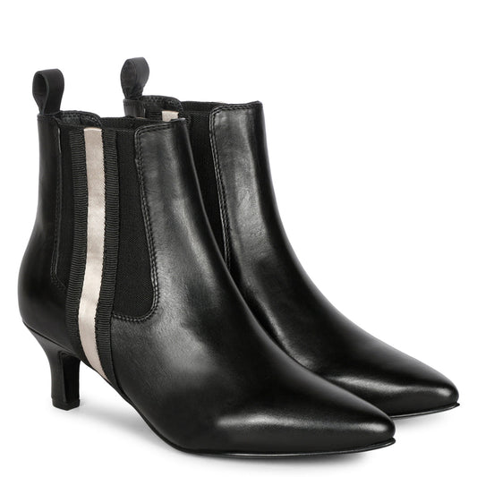 Saint Ashlyn Black Crust Leather Beige Strip Handcrafted Ankle Boots