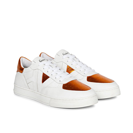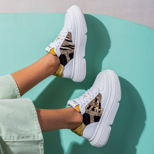 Saint Antea Studs Embellished White & Yellow Leather Sneakers