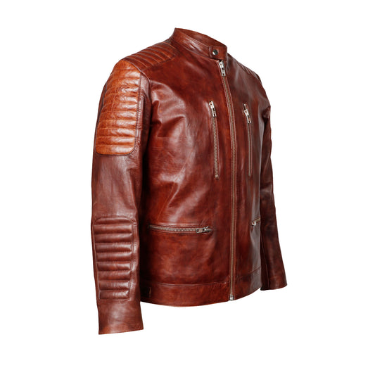 Saint Ellis Burgundy Leather Men's Cafe Racer Jackets