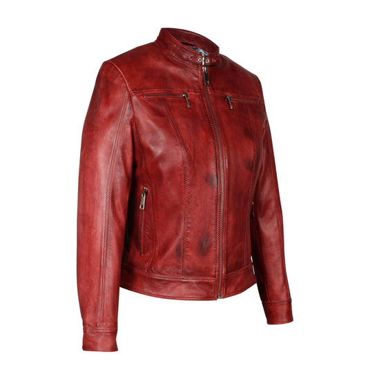 Saint Edwina Burgundy Leather Women Cafe Racer Jackets