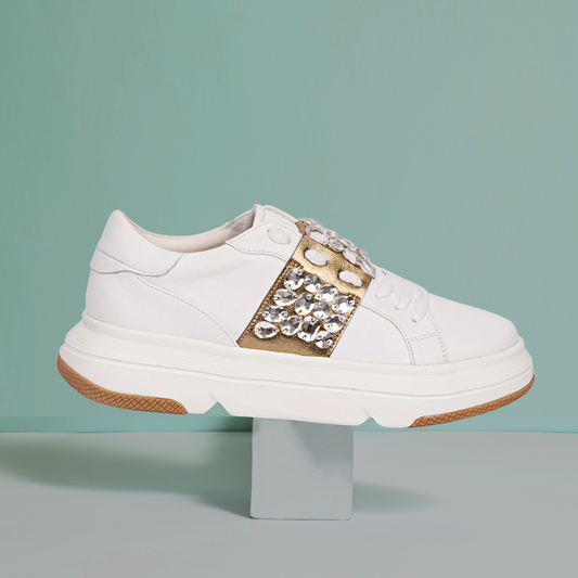 Saint Jasmine Gold Metallic Lizard Print Leather Moccasins