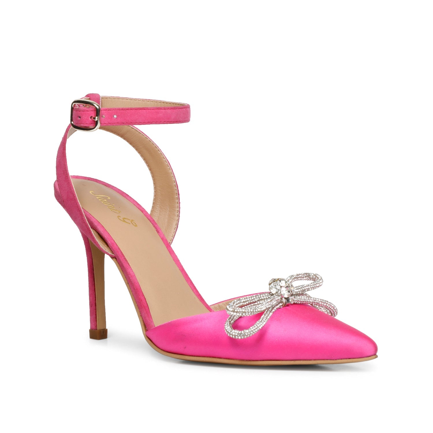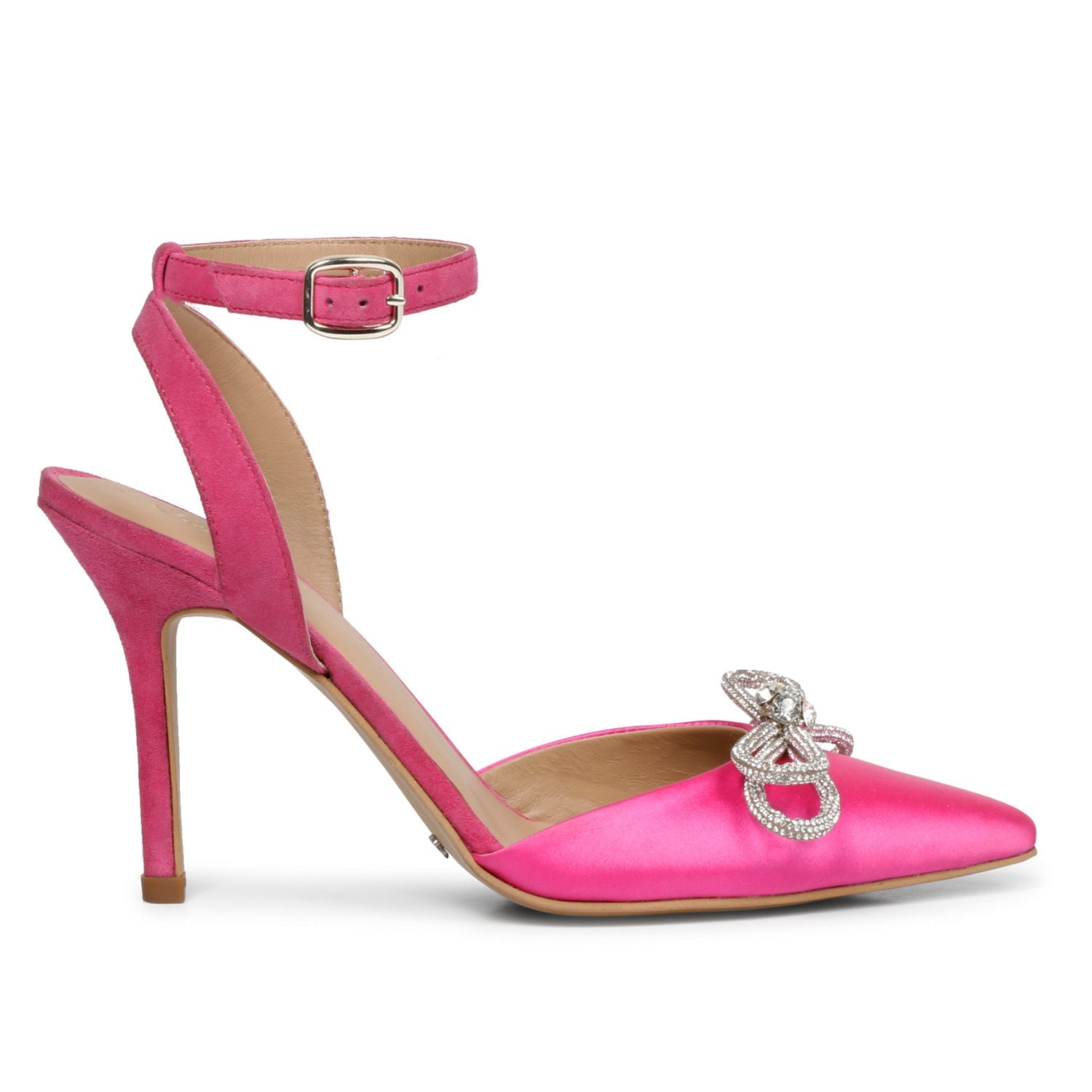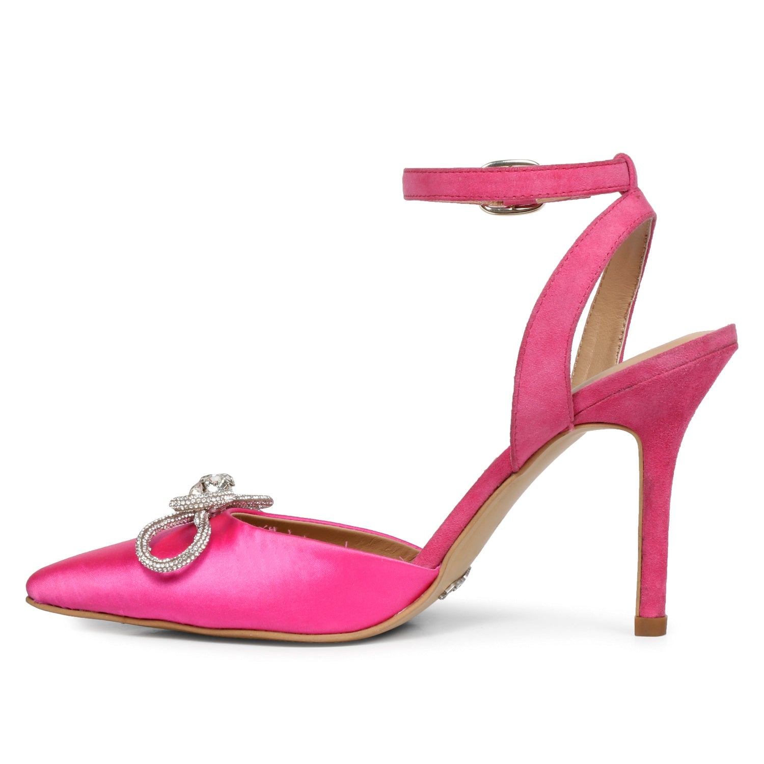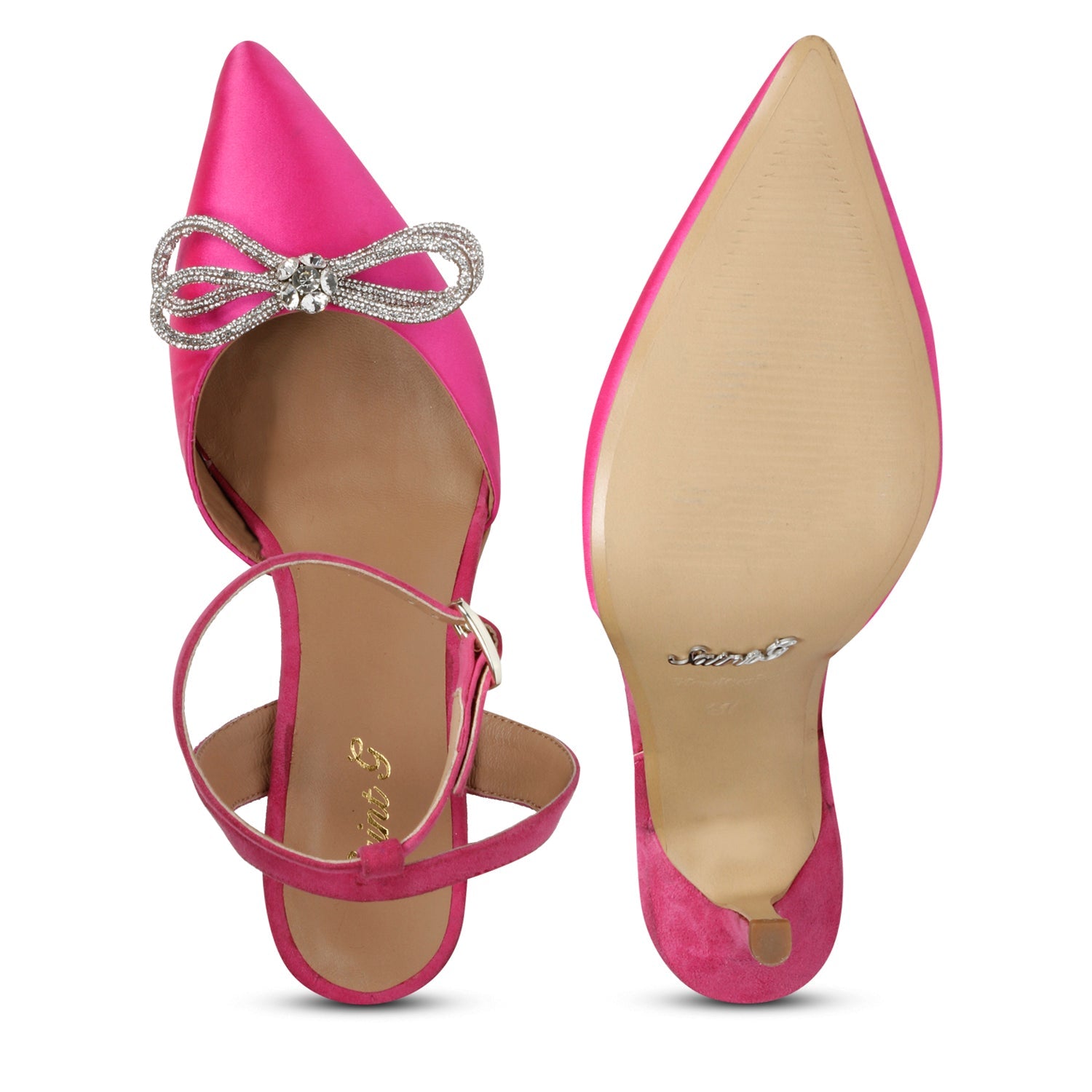 Saint Kylie Silver Stone Studded Bow Hot Pink Leather Stilettos